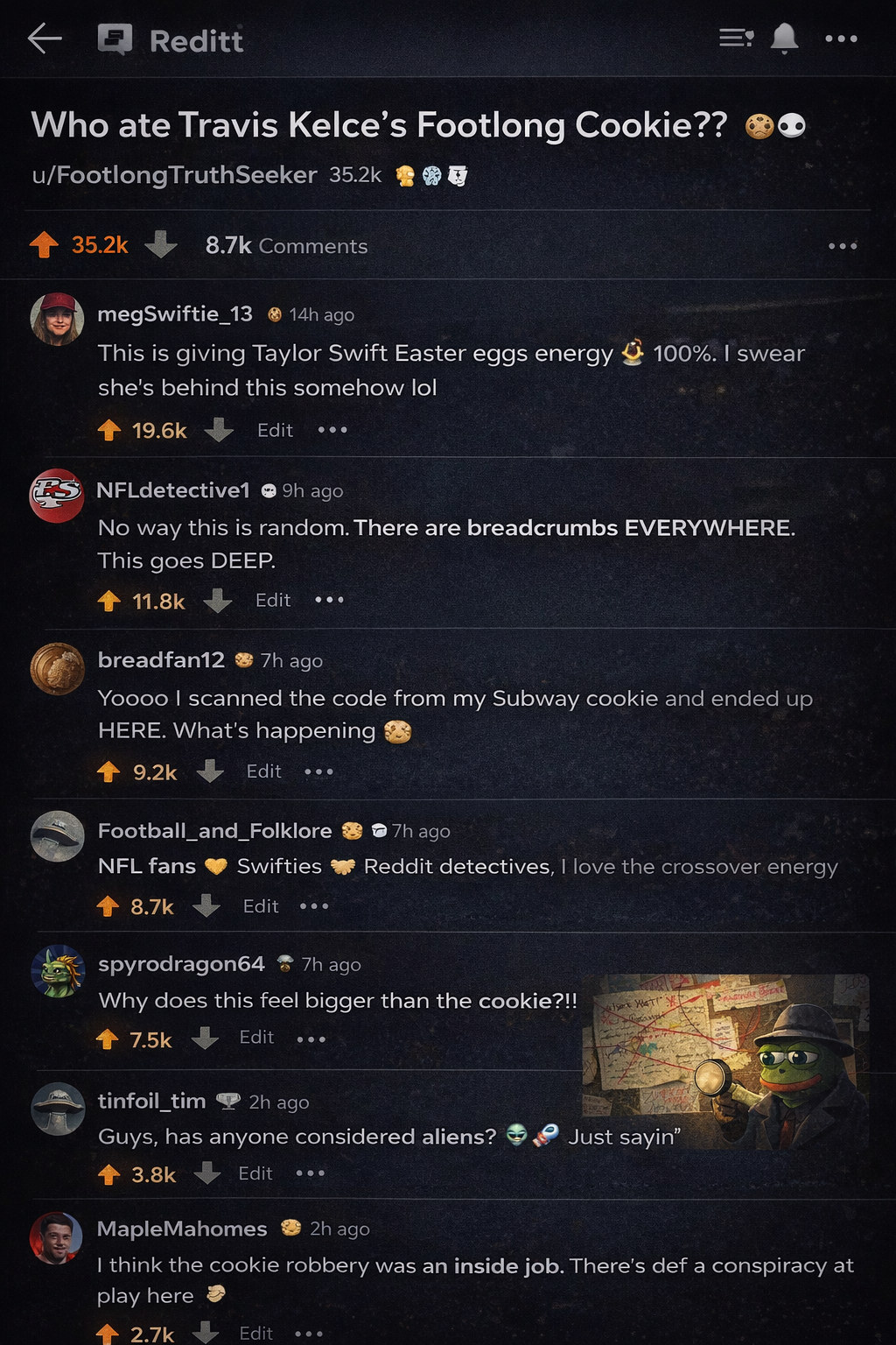 Travis Kelce’s Footlong Cookie has gone missing, and the hunt is on. Hidden in every package is a code to scan, a breadcrumb leading straight to the depths of Reddit. From there, the chase is on. A digital scavenger hunt unfolds. And at the end? A reveal worth the ride. A surprise woven into the moment; maybe a drop, maybe an exclusive experience, maybe a secret only those who dared to play will ever know.